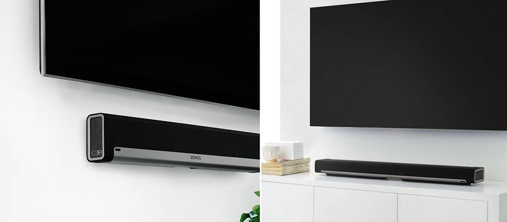 - Саундбар или звуковая панель. В первоначальном виде — это узкая колонка, оснащенная несколькими динамиками. Она удобна для расположения, можно положить под телевизором на тумбу или повесить на стену. В более продвинутых вариантах могут добавляться тыловые сателлиты и сабвуфер. Сегодня это самый распространенный вид, выпускается многими производителями – от Samsung и LG до аудиогигантов Pioneer и Yamaha.