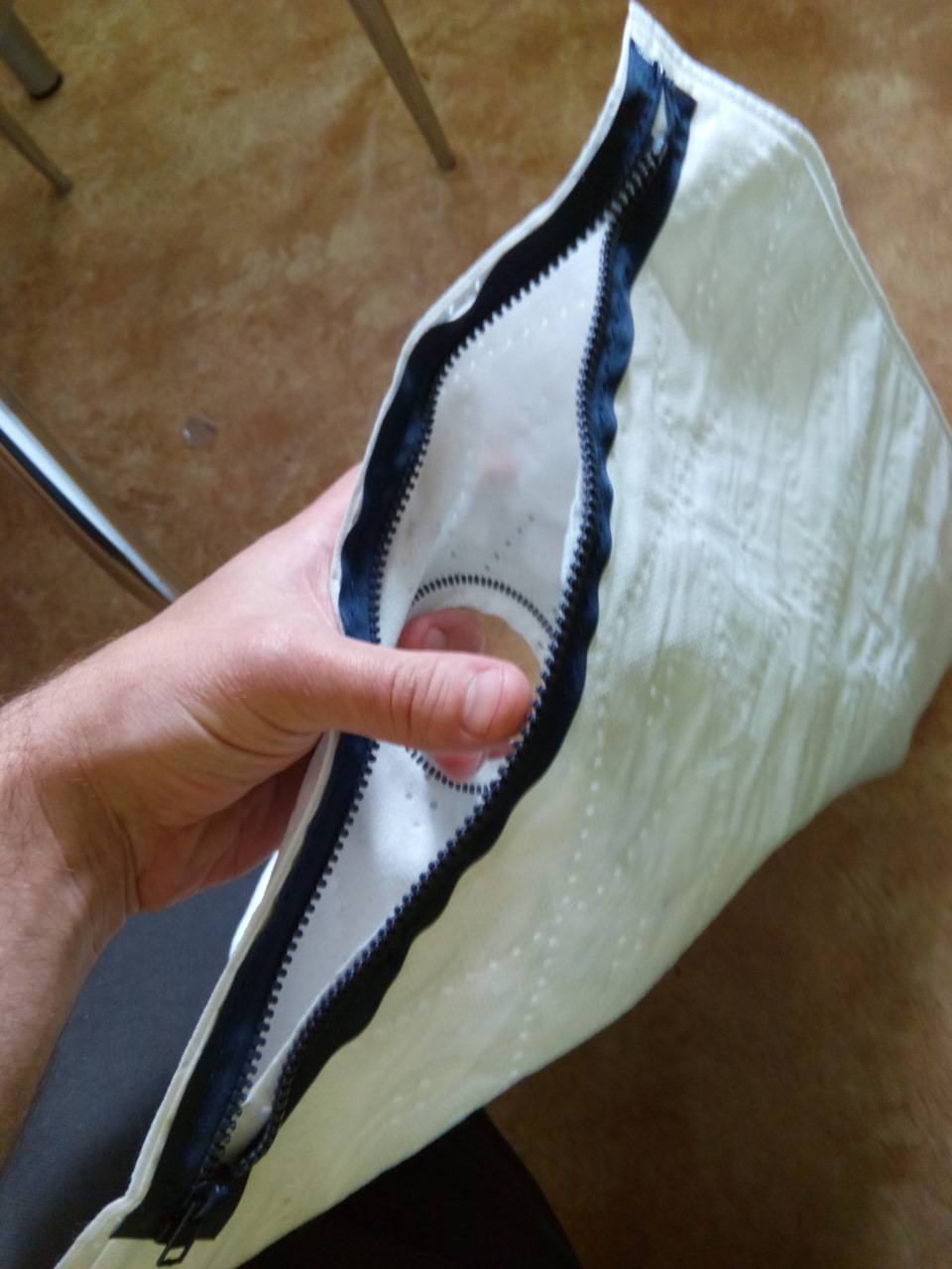 Попросил жену вшить молнию, чтобы быстро и удобно опорожнять мешок. Вот что получилось.