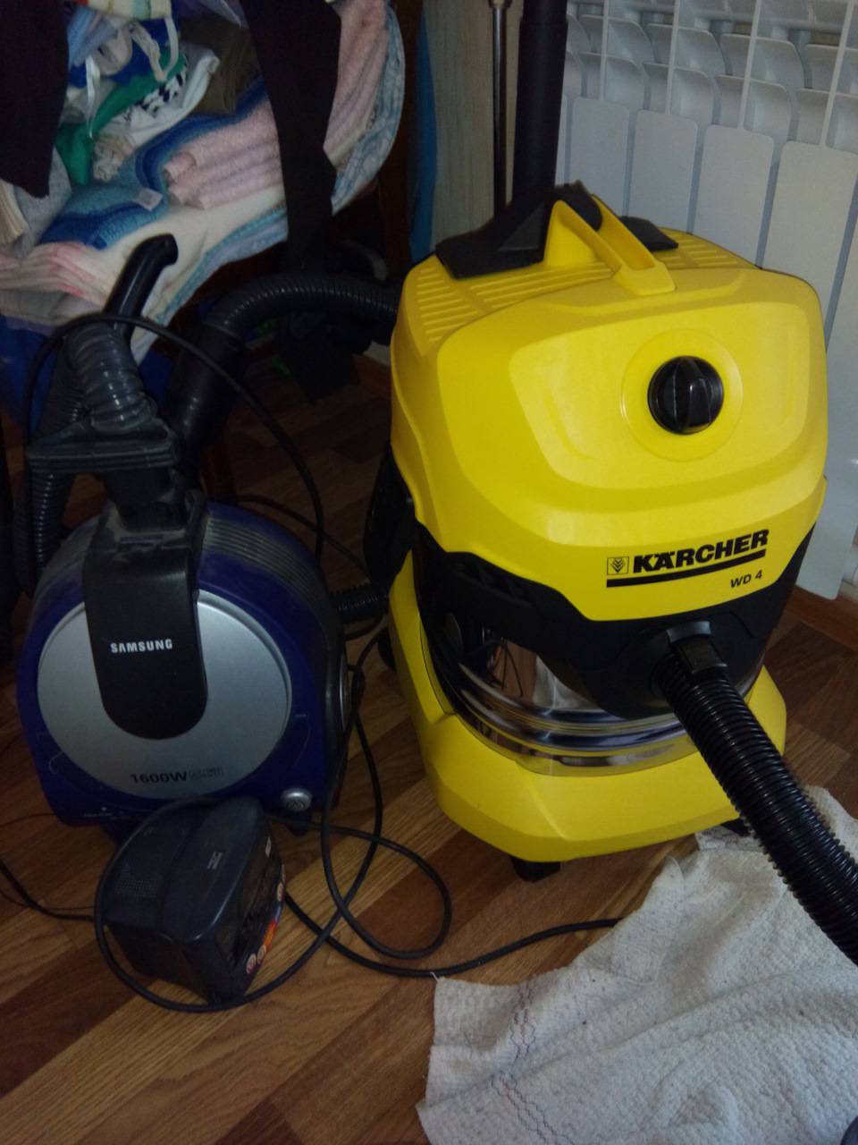 В процессе работ понял, что бытовой пылесос абсолютно не справляется со своей задачей, и мелкая строительная пыль очень неохотно в него всасывается.Уговорив жабу, купил пылесос Кёрхер WD4. Думаю, не стоит объяснять, что сосает он ОЧЕНЬ хорошо. По крайней мере в сравнении с Самсунгом.