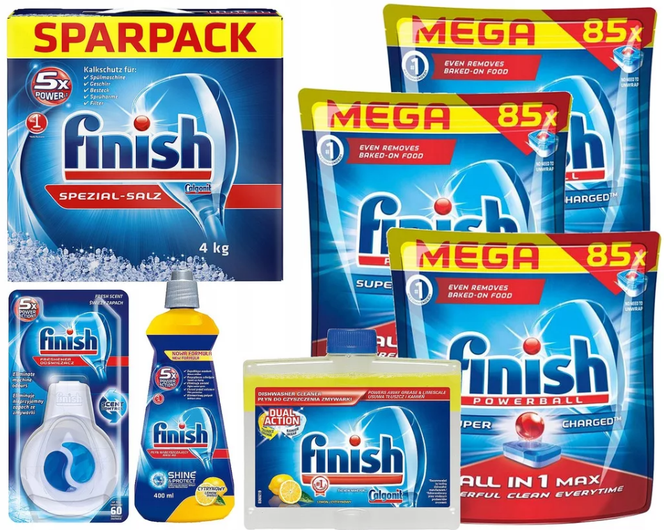 - Finish – бренд принадлежит крупной компании RB, начиная с 1953 года. Как только в продажу поступили посудомоечные машины, тут же появилась сопутствующие средства для нее с таким именем от британско-нидерландской компании. Сегодня продукция пользуются большой популярностью более чем в 40 странах мира.