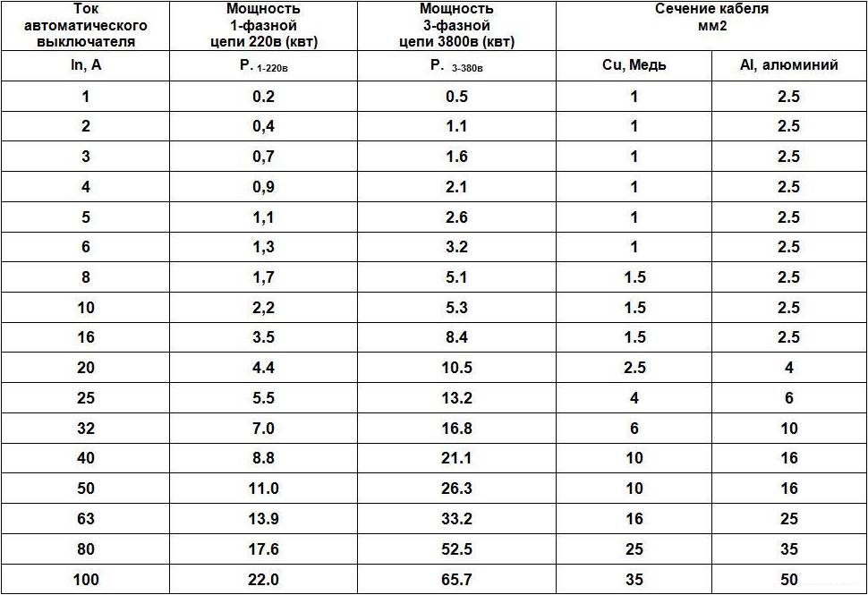 К сведению! Распространенные классы номинального показателя бытовых автоматов: 6, 10, 16, 25, 32, 50 А.