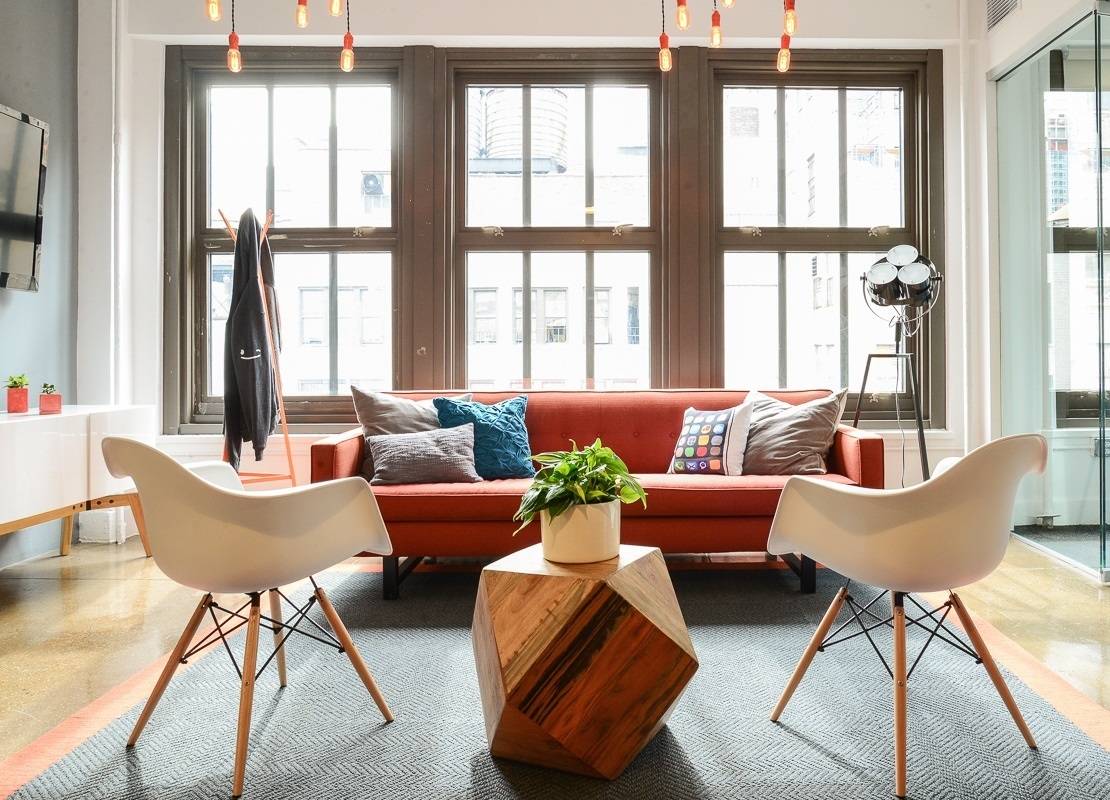 1. Под цвет мебели, которая будет располагаться на нем или возле него. Так, на сером ковре может стоять серый диван, а на синем ковре — обеденный стол с синими стульями.