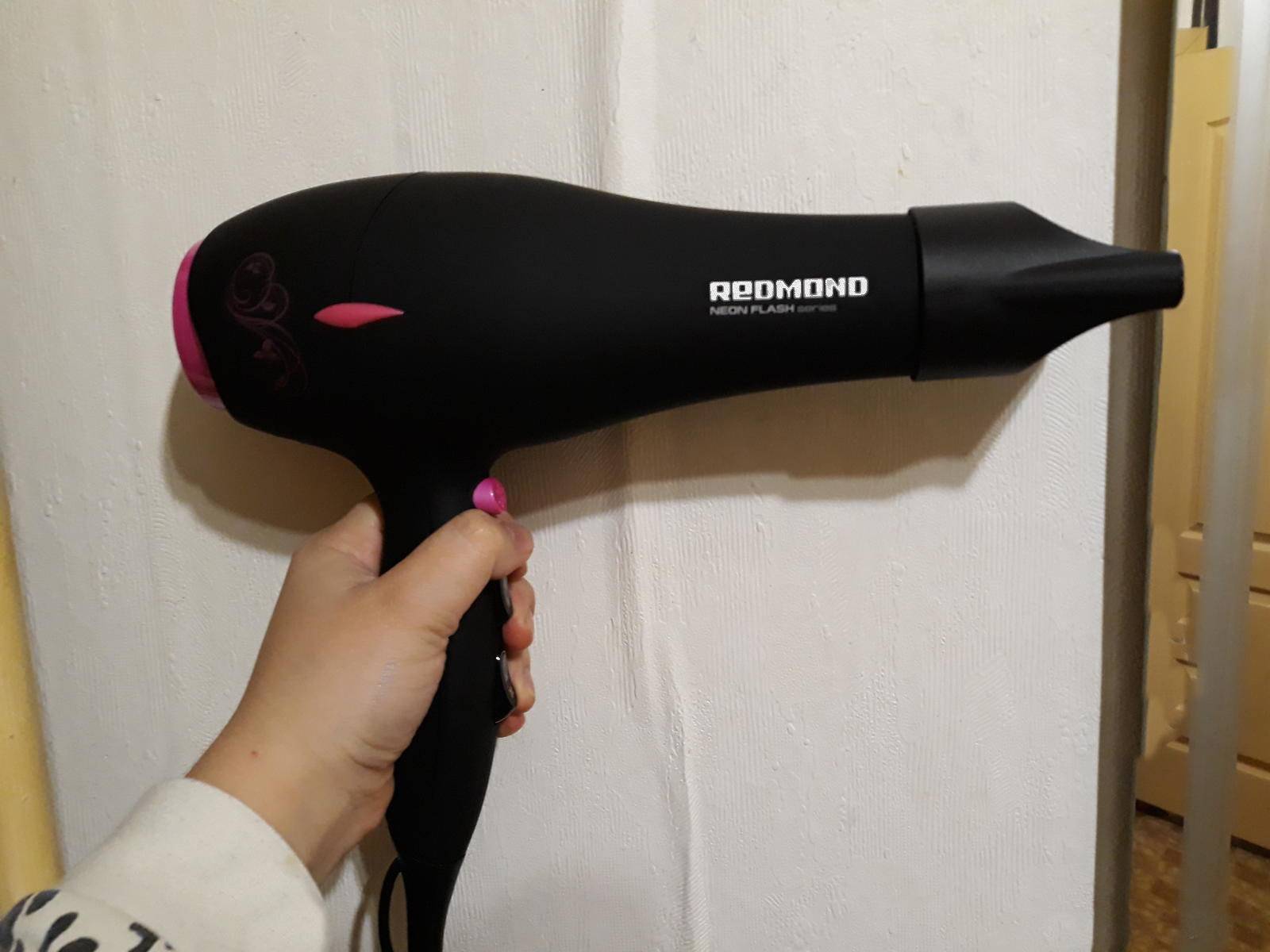 Открывает рейтинг модель от китайского производителя Redmond. 5 режимов работы – два температурных и три скоростных. Также предусмотрена холодная сушка. Мощность – 2 кВт. Есть съемный фильтр и крючок для подвешивания. Вес – 0,48 кг. В комплекте насадка концентратор. Есть защита от перегрева. Длина шнура – 1,8 метра. Среди достоинств, отмеченных пользователями – малый вес и мощность. Производится в двух цветовых решениях. Цена – от 1 500 рублей. (2 магазин — Везде, Москва).