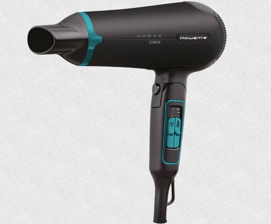 Удобная модель для поездок с высокой мощностью. Есть складная ручка. Мощность – 2,2 кВт. Есть ионизатор, холодная сушка. Есть 3 температурных режима и 2 скоростных. Одна насадка – концентратор, можно повесить и почистить фильтр. Цена – от 2 500 рублей. (3 магазин, 4 магазин).