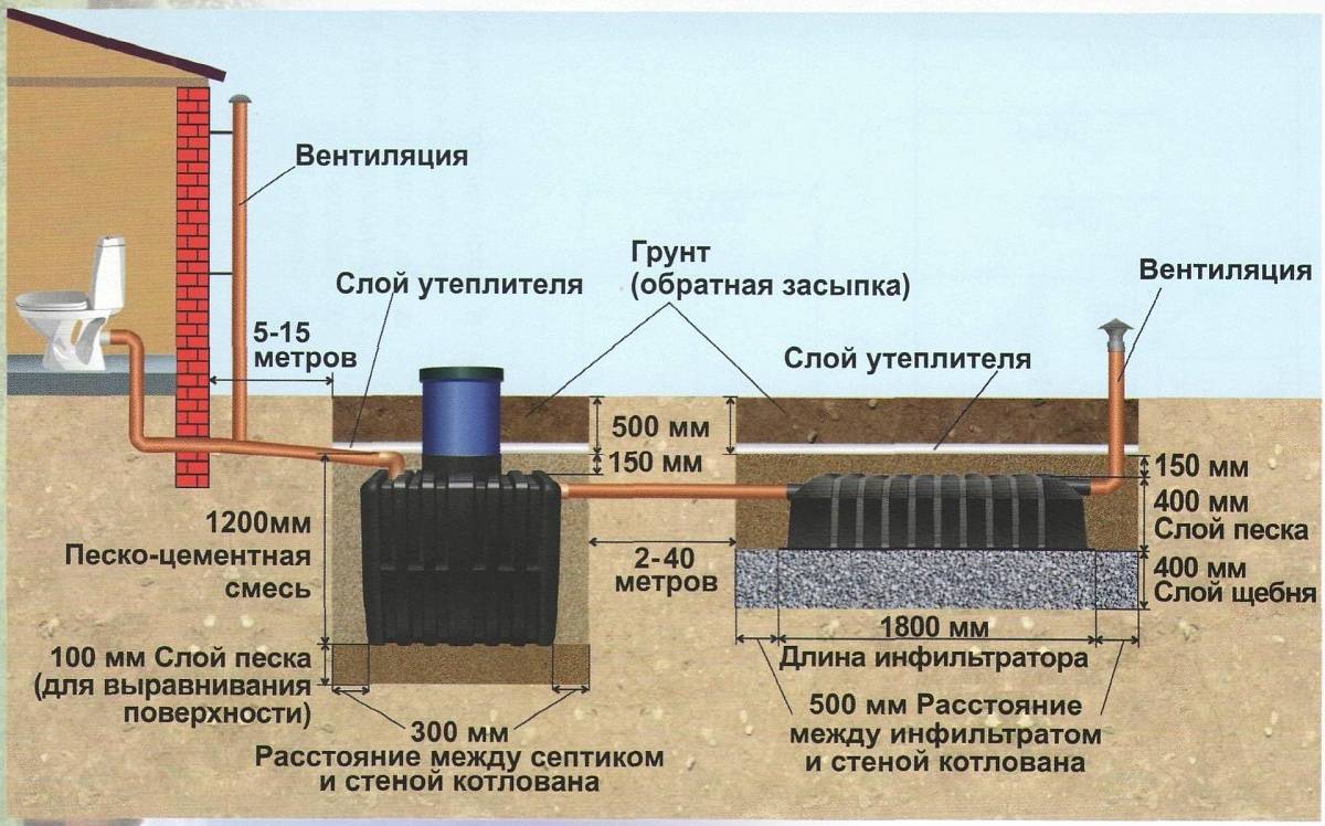 - трубы водоснабжения должны быть минимум в 10 метрах от септика;