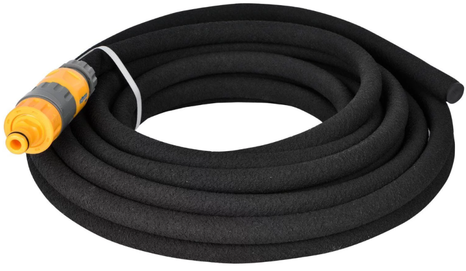 Стрейчевый шланг из полиэфирного тканого полотна (снаружи), пластика и латекса (внутри) длиной 22,5 м выдерживает давление до 16 бар при рабочих параметрах – 2 бар. Рукав для полива растягивается самостоятельно при подаче воды, увеличиваясь в 3 раза, а при отключении автоматически собирается в изначальное состояние.