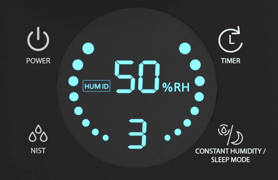 На экране отображается уровень увлажненности воздуха, остаток воды в резервуаре, температура окружающей среды. Встроенный дисплей существенно влияет на цену прибора в сторону повышения.