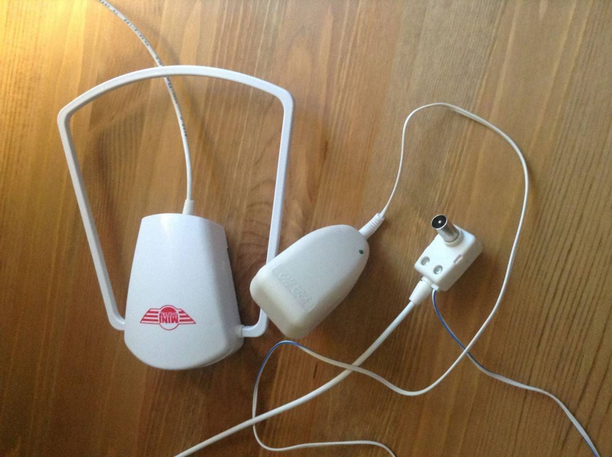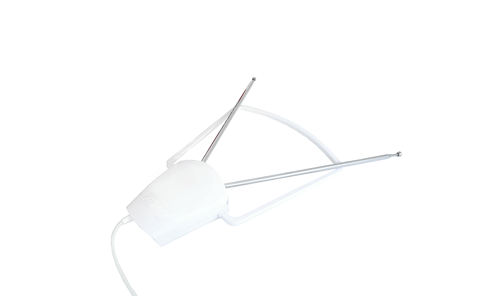 Продолжает обзор современная антенна комнатного типа. Большинство пользователей приятно удивляет футуристический дизайн изделия. По сути, антенна напоминает летающую тарелку с двумя рожками. Однако милый корпус скрывает достаточную производительность. Встроенный усилитель обеспечивает разгон сигнала до 30 дБ, чего более чем достаточно для дома.