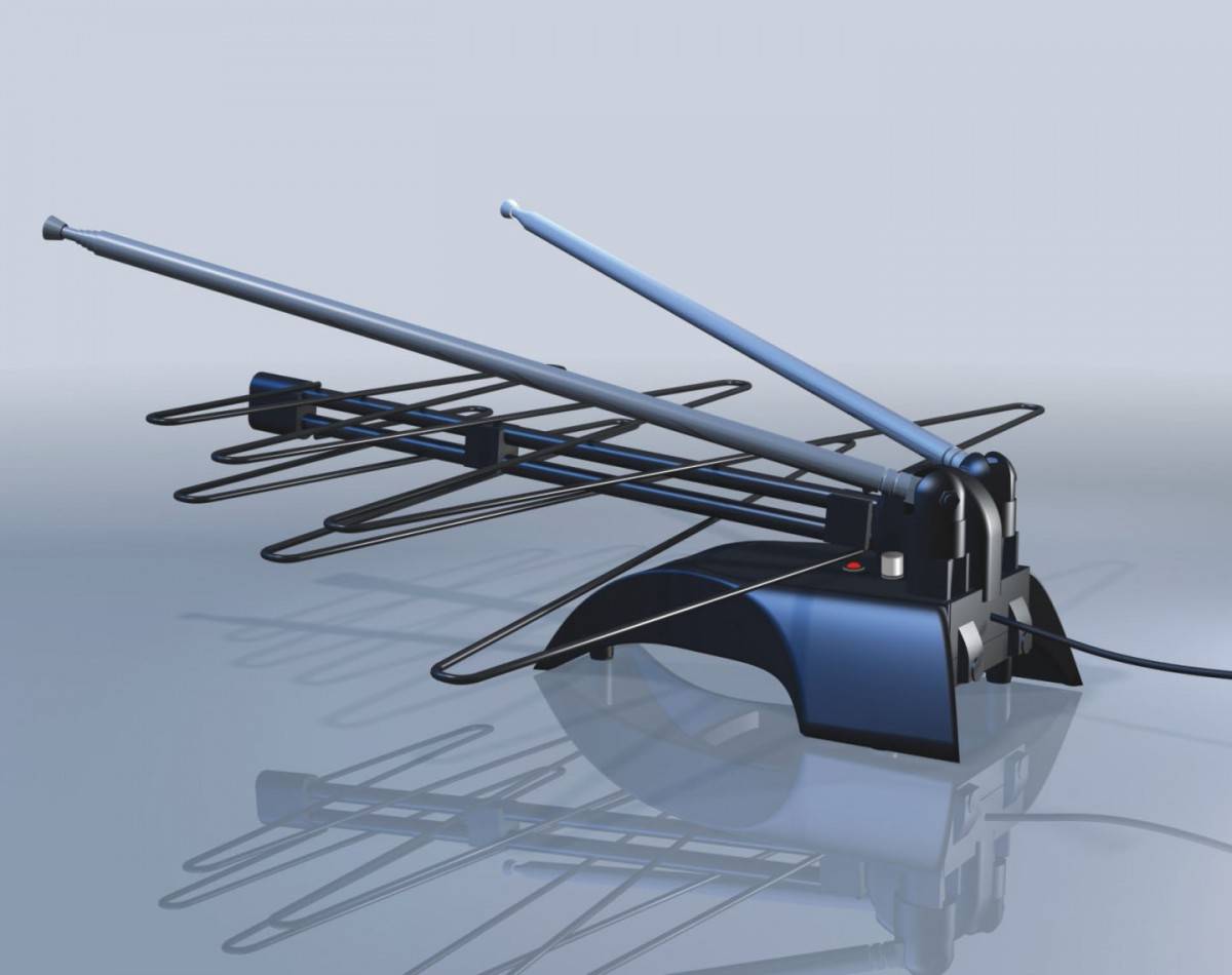Стильное устройство в форме акульего плавника для горизонтальной и вертикальной поляризации ТВ-сигнала. Оснащено встроенным однокаскадным усилителем 20 дБ. По данным производителя, антенна обеспечивает приём цифрового и аналогового сигнала на расстоянии до 40 км от телевышки, но, по отзывам, дальность работы при разном рельефе местности достигает до 55 км.