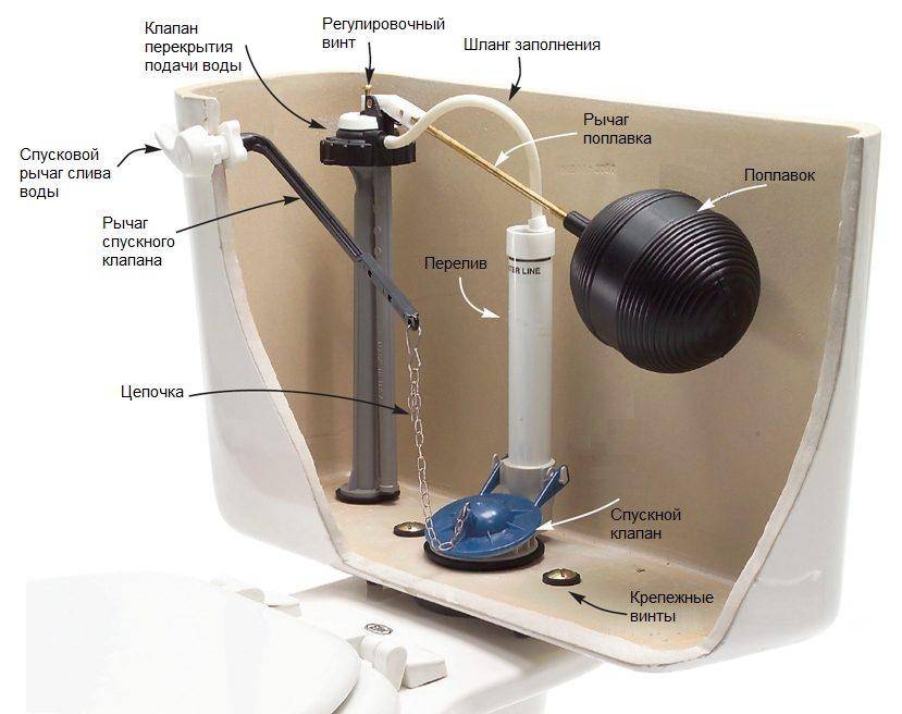 Арматура сливного бачка требует ухода и периодического ремонта. Например, в сливном бачке может прийти в негодность поплавковый клапан, да и сам поплавок. Помимо этого, могут слежаться уплотнительные кольца (герметизируют подающую и сливную трубу), тем самым потеряв свою эластичность.