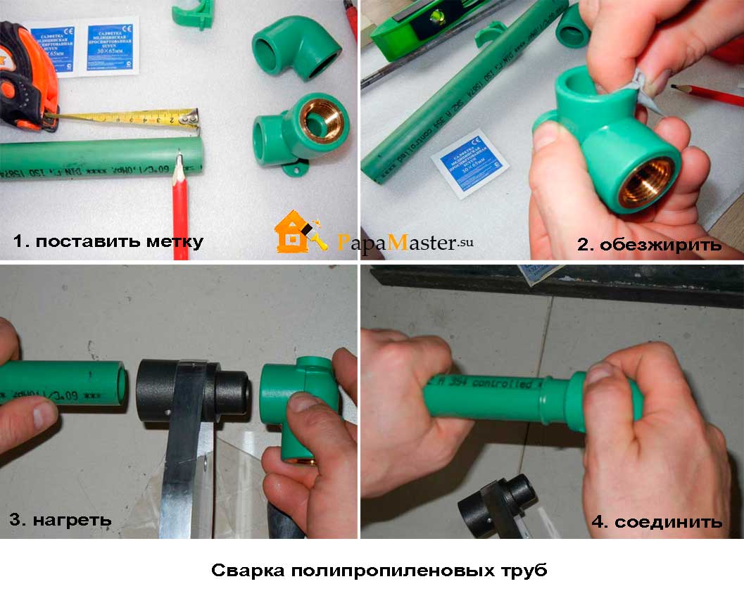Если не выполнить это условие, то недогрев приведет к непрочному стыку, а перегрев – к сужению внутреннего диаметра водопровода. Будьте внимательны.