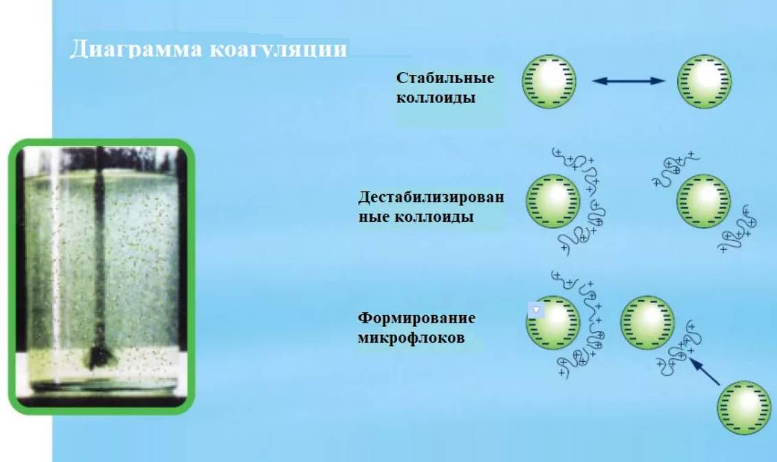 Коагулянты провоцируют образование устойчивых связей между мелкими частицами загрязнений и присутствующих в воде микробов