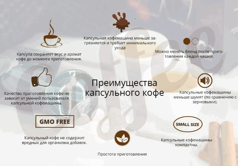 Даже опытный бариста в самом дорогом кафе может ошибиться с ингредиентами и количеством их. Пресловутый человеческий фактор еще никто не отменял. В капсулах же дозировка выверена до десятых долей миллиграмма. На выходе вы получите чашку ароматного кофе по мировому стандарту.