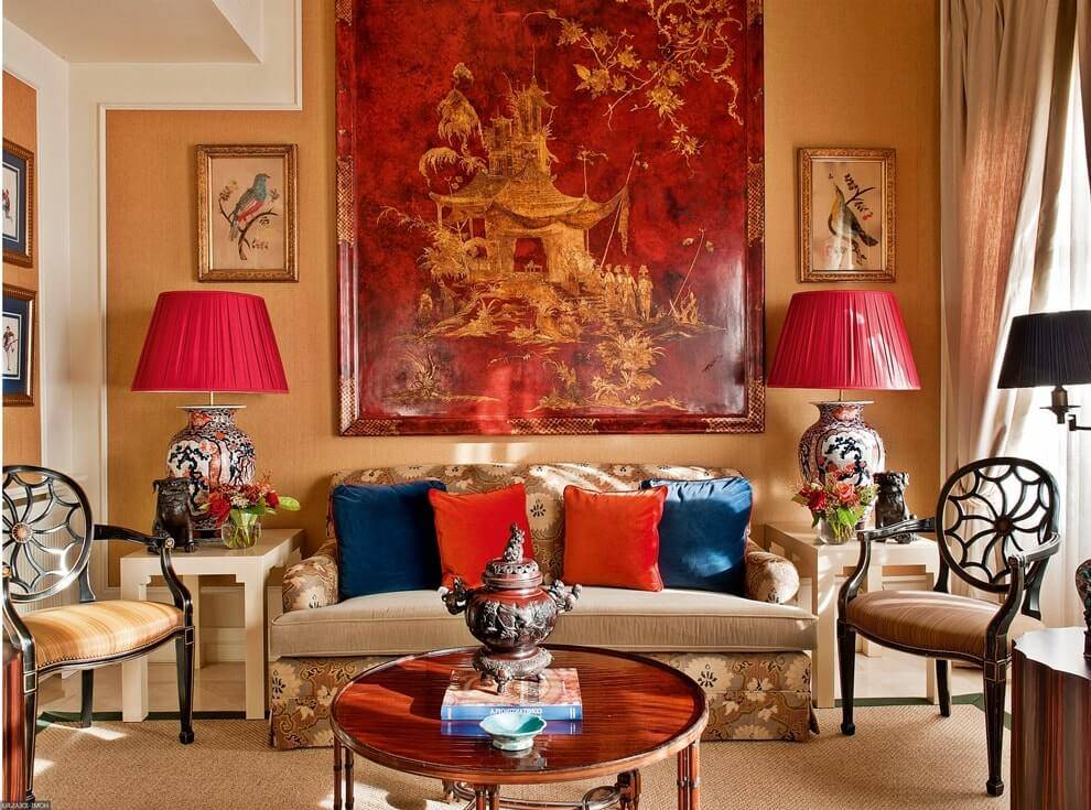 Китай – богатая культура древнего происхождения. Украшения, вдохновленные Китаем – красочный фарфор, фигурки, бумажные фонари, образы драконов. Тибет – несмотря на китайское господство, он по-прежнему культивирует собственную культуру. Тибет в основном связан с буддийской духовностью. К числу украшений относятся изображения Будды, ароматерапевтические камины. Персия – сегодня известная как Иран – старейшая историческая земля Востока. Персидские ковры – синоним ближневосточного класса, элегантности. Из Персии приходит знаменитый украшающий мотив пейсли, использующий форму капли. Африка – знаменитые африканские маски, сделанные из экзотической древесины, эффектно сочетаться с интерьером. Америка в старом издании или индейской культуре