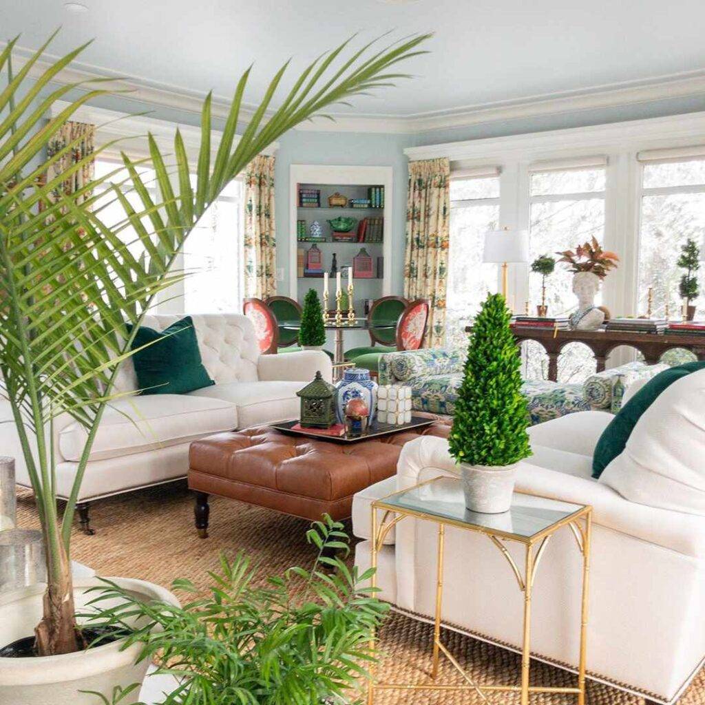 Кстати, о растительности – колониальный стиль трепетно относится к живым растениям в помещении. Вы можете еще больше приблизиться к духу английских колоний, если в комнату поставите пару горшком с пальмами, папоротниками или другими растениями.