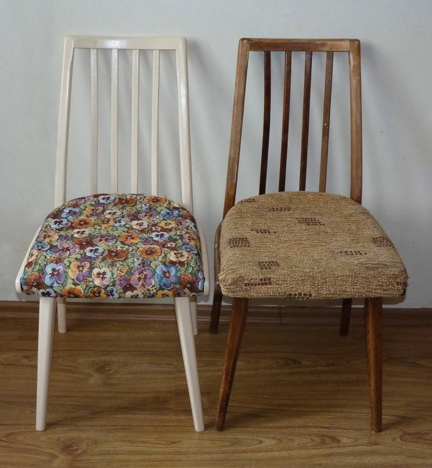 Для восстановления мебели большинство материалов имеются в хозяйстве: поролон, отрезки крепкой ткани и тому подобные элементы. Также стул можно обновить лакокрасочным покрытием, он будет смотреться как только что купленное изделие.