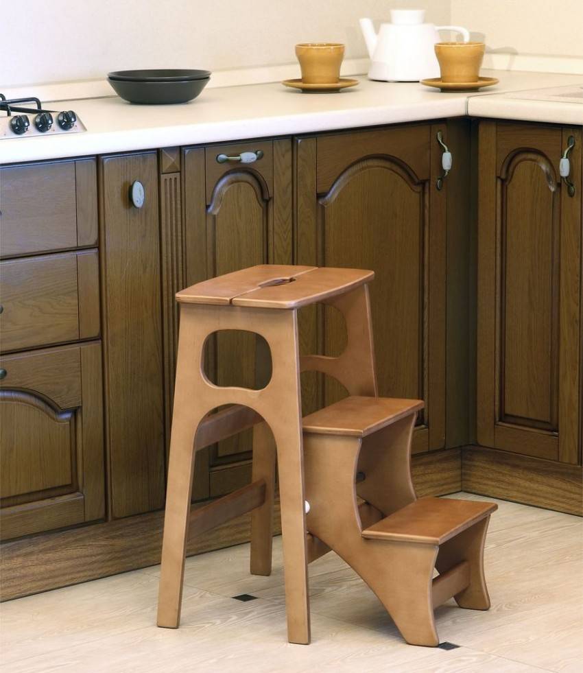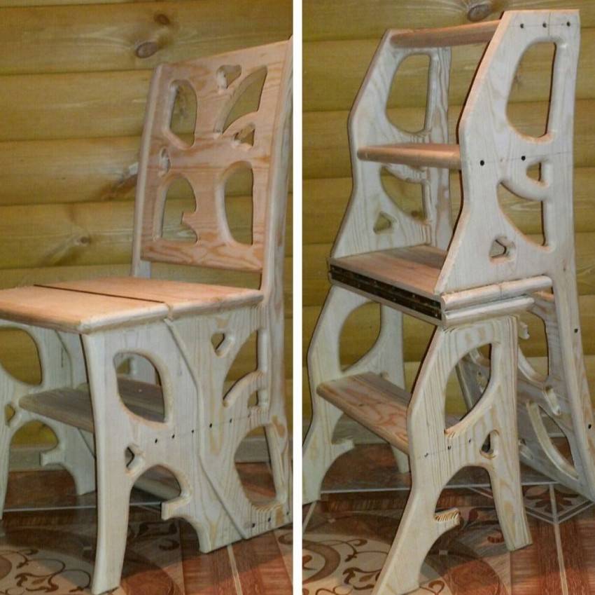 - Трансформеры. Такие табуретки способны менять высоту расположения сиденья над уровнем пола, что позволяет им, расти вместе со своим хозяином. Модель также может исполнять роль стремянки, которая пригодится не только в детской.