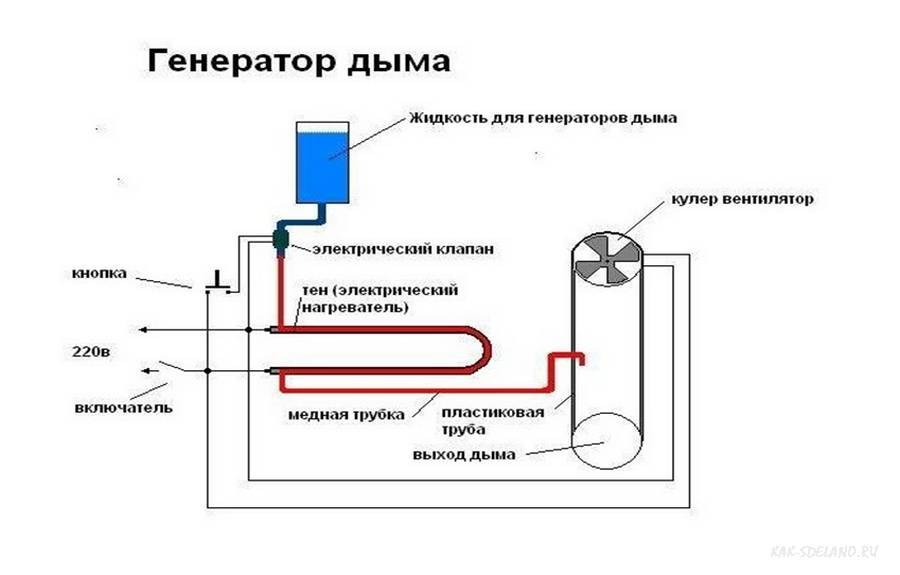 Самая простая конструкция дымогенератора состоит из следующих узлов: