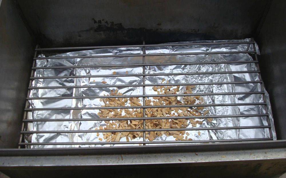 От типа щепы зависит цвет и аромат блюда — чаще всего в коптильнях используют ольховые или дубовые опилки. Кроме того, для копчения хорошо подходят дрова яблони, вишни и других плодовых деревьев. Производитель Anuka также советует использовать определенный объем стружки: от половины стакана для легкого копчения и до двух — для интенсивного вкуса и цвета. Также щепу можно заранее замочить в воде или вине — это придаст блюду дополнительный аромат.