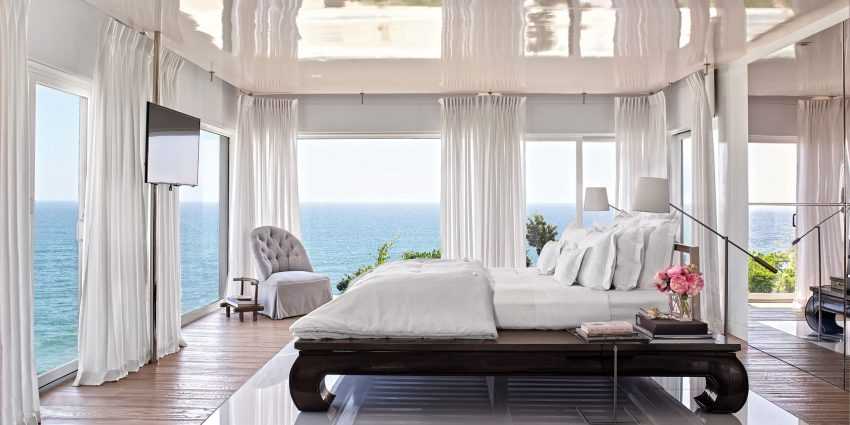 Однотонные занавески могут также сделать вашу спальню органичной, при этом в неё привнести необходимый настрой.
