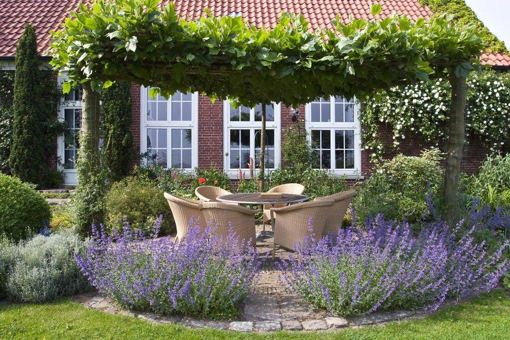 Пожалуй, один из самых непростых вариантов для ландшафтного дизайна – прованский стиль. Все потому, что он должен сочетать в себе не только эстетическую, но и практическую функцию. В основном для этого используют плодовые и декоративные деревья, а также различные детали из красного кирпича.