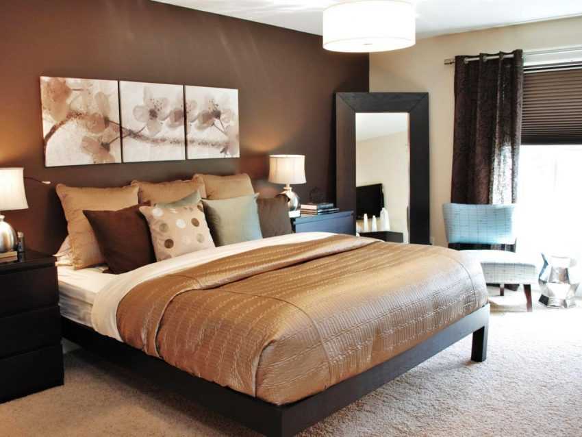 - Цвет интерьера в спальне. Для оформления используют более светлые, теплые оттенки, которые не нарушают сон, отдых, психологический настрой.