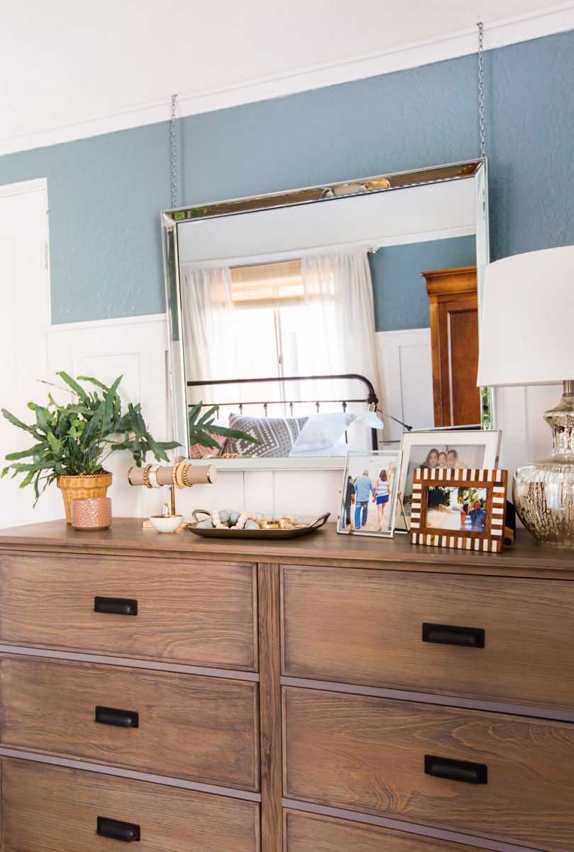 Низкий потолок можно визуально поднять при помощи зеркала, размещённого в верхней части комнаты.