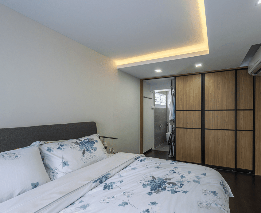 Для пожилых людей лучшим вариантом станет устройство спальни на первом этаже, здесь они не будут испытывать сложности с хождением по лестницам. В этом случае спальную комнату отодвигают на максимальное расстояние от входной двери и кухонной зоны.