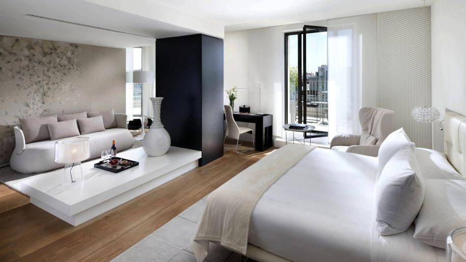 Внутреннее содержимое спальни, сделанной в стиле минимализма, в частых моментах соприкасается с дизайном хай-тек. Однако, между ними имеется ряд отличий обусловленных: