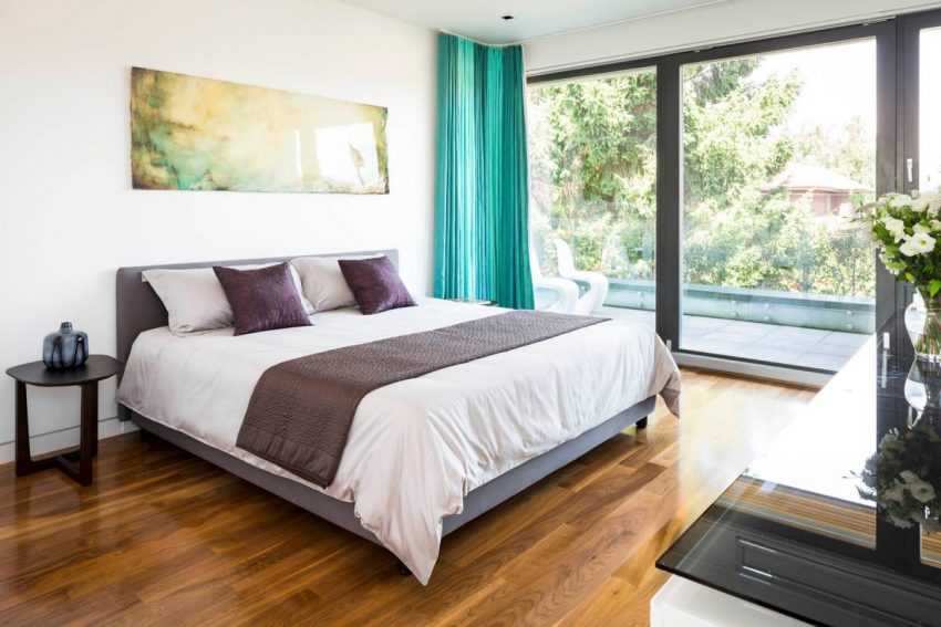 Именно это расположение предоставит возможность подольше поваляться в кровати погожим деньком, не жмурясь от солнца, и защитить спящих от шума улицы. В то же время в опочивальню будет проникать довольно большое количество света.