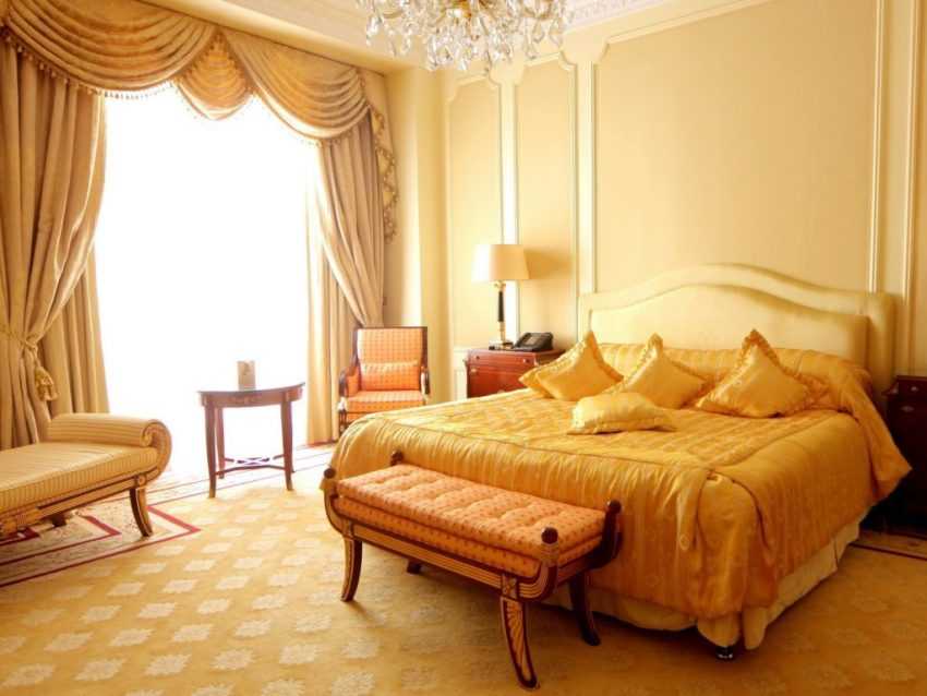 - присутствие бархатных или шелковых складочных тканей, изысканных декоративных вещей с украшением в виде позолоты и живописной резьбой по дереву;