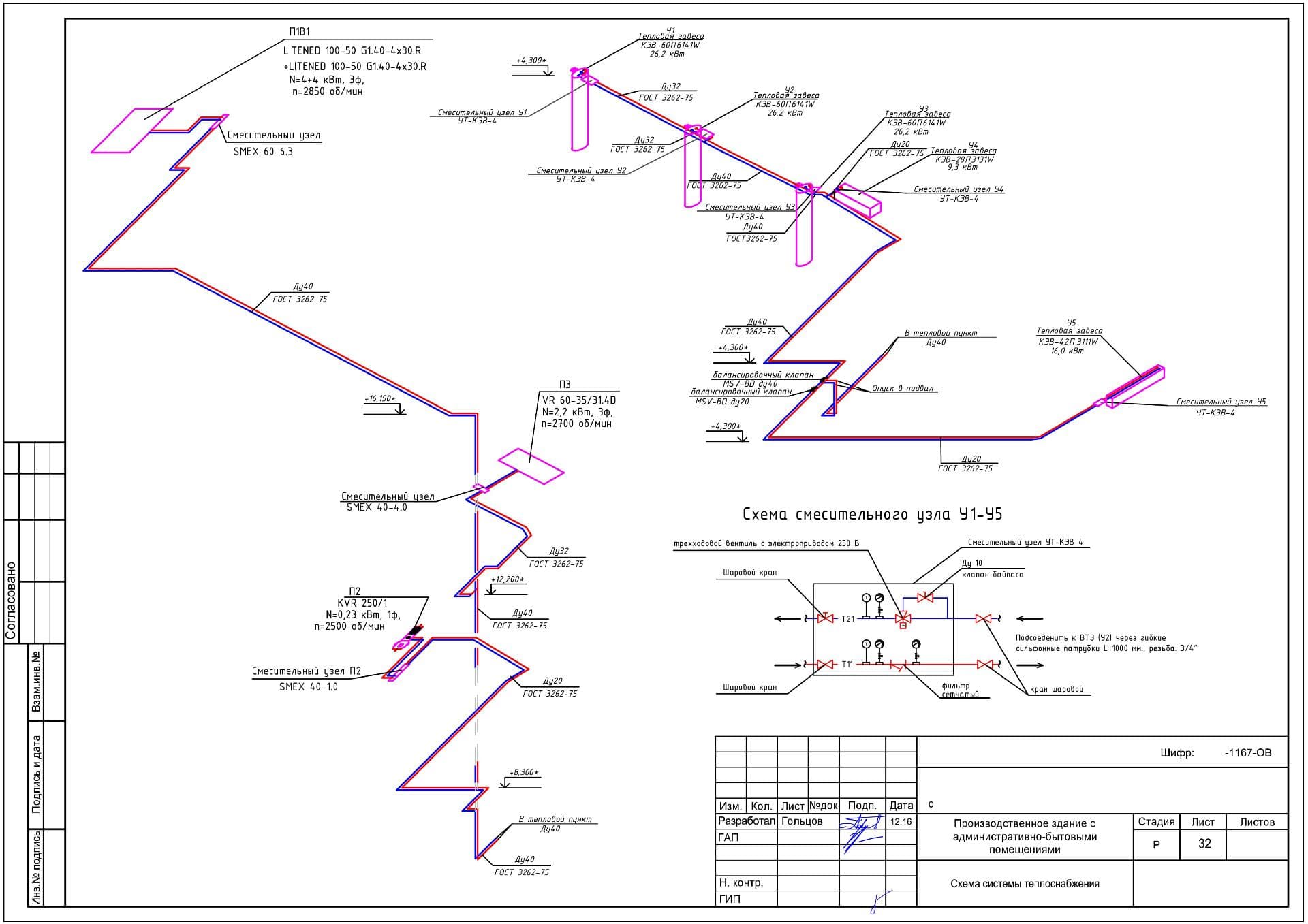 В комплект проекта вентиляции обязательно входит раздел теплоснабжения приточных установок. Приточный воздух зимой должен подогреваться. Для этого чаще всего используется водяной нагреватель и рекуператор. Воздух нагревается в рекуператоре, а затем проходить через секцию водяного нагрева, которая подключается к системе теплоснабжения. Трубы теплоснабжения и всю обвязку нагревателей должен просчитать инженер-проектировщик. Система теплоснабжения должна быть сбалансирована с другими потребителями.