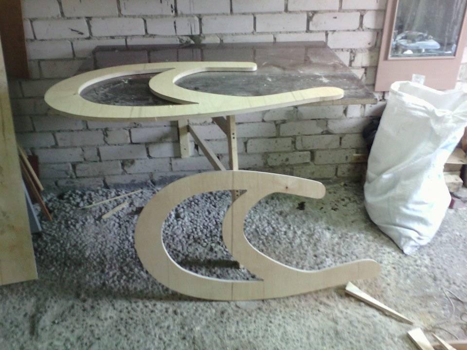 - На листе фанеры размечаются полозья в соответствии с размерами кресла-качалки.