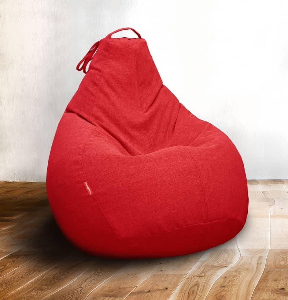 Бескаркасное кресло имеет ручку, поэтому его легко переносить