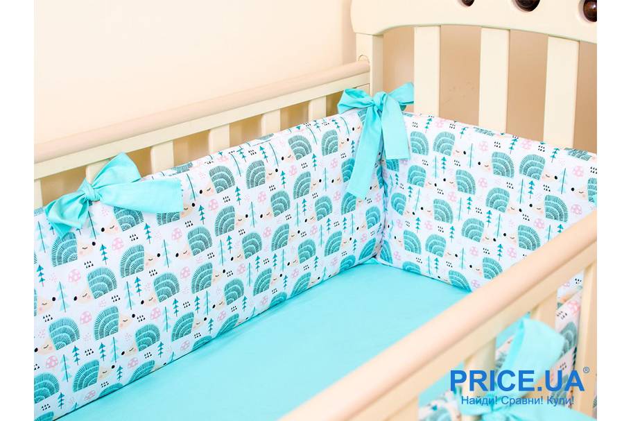 Бамперы на полную высоту кроватки препятствуют гармоничному развитию малыша, поэтому лучше шить подушки, перекрывающие поверхность решетки на ⅔.