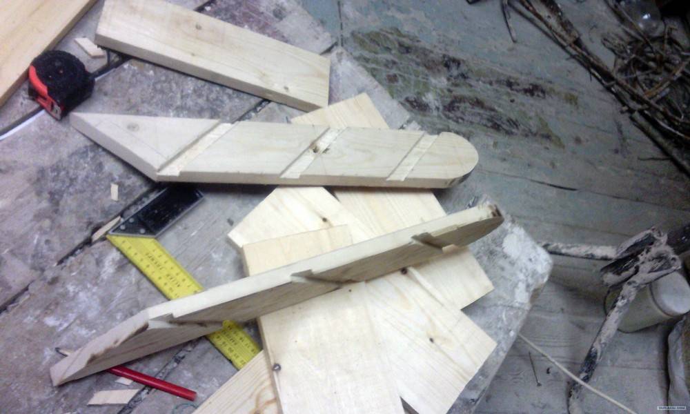 Опора изготавливается из обрезков брусьев. Все должно прикрепляться к коньку крыши. Необходимо взять клей и верхнюю часть конька присоединить ко всей заготовки будущей мебели.