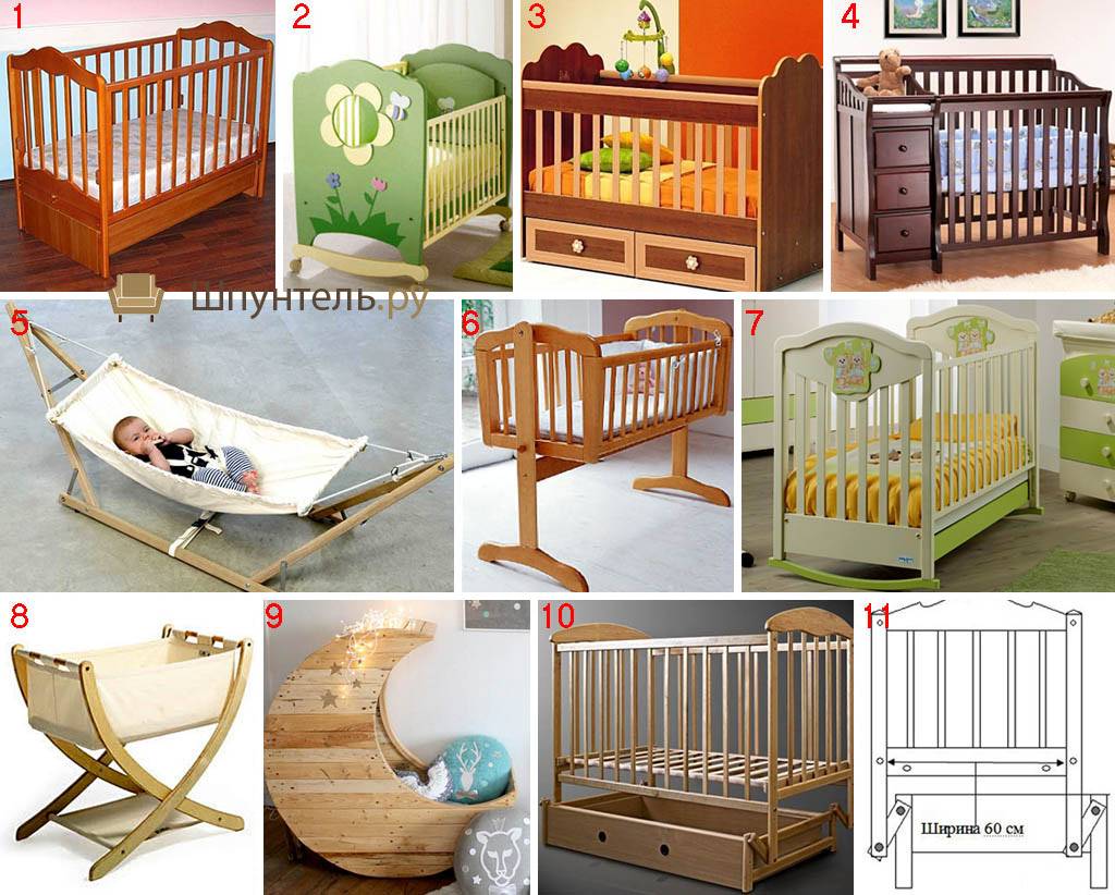 Классическая кроватка для новорожденного, поз. 1 на рис., конструкция незамысловатая. Основные требования к ней:
