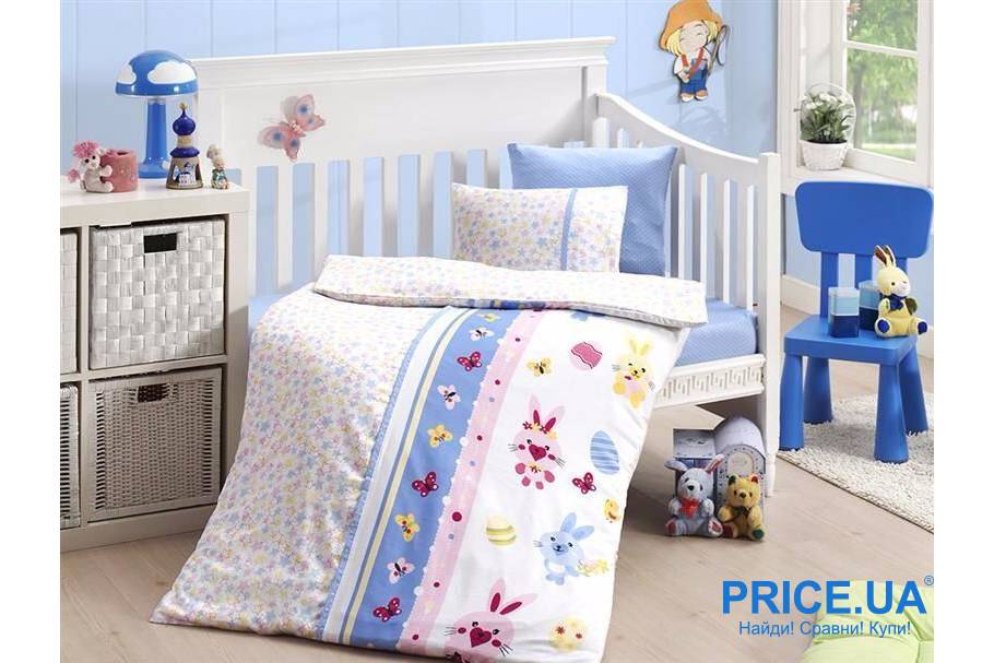 С учетом стандартной ширины хлопчатобумажных тканей, на полный комплект постельного белья понадобится примерно 4-4,5 метра. Конкретные размеры простыни и пододеяльника замеряем по размеру внутренней поверхности кроватки, делая припуски на выбранный фасон и мягкое облегание тела ребенка.