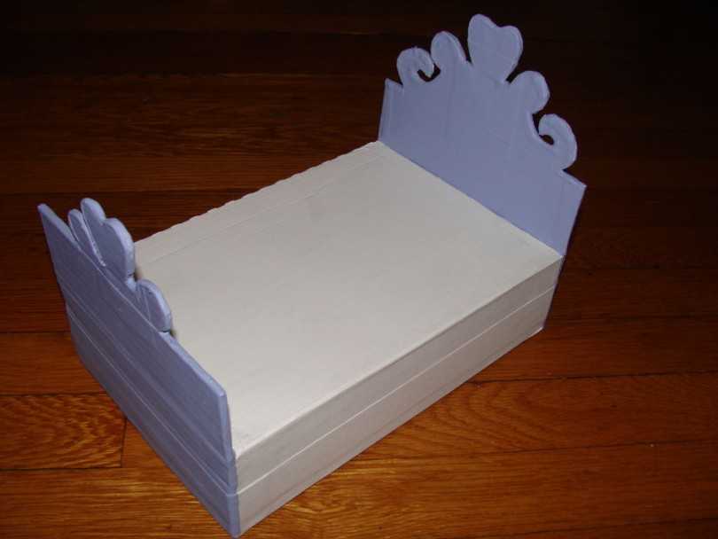 Вот, в принципе, и всё, кроватка из коробки для кукол своими руками сделана. Теперь она может использоваться в играх ребёнка.