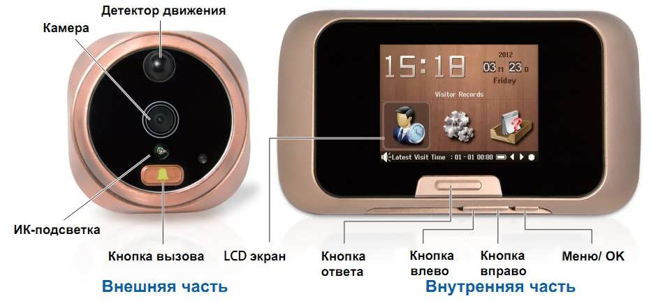 - видеоглазок, который является миниатюрной копией простейшей камеры видеонаблюдения;