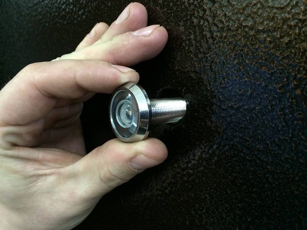 При первой установке в двери делается отверстие, соответствующее окружности приобретенного глазка. В случае замены устройства, важно, чтобы оно плотно зафиксировалось в полотне.