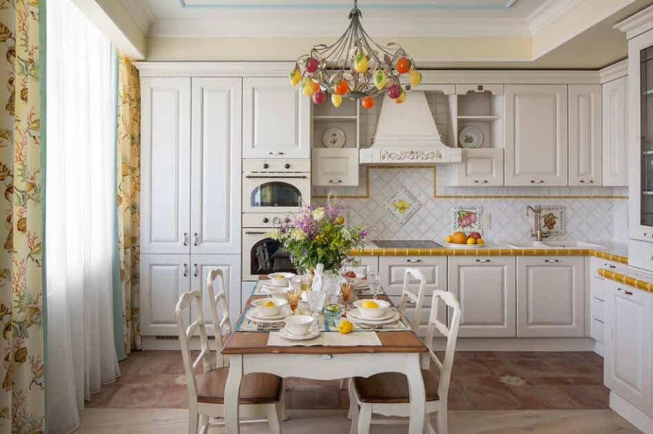 Как уже было сказано, все используемые для отделки кухни материалы должны быть обязательно натуральными и высококачественными. Применение синтетических материалов допускается, однако они должны быть максимально приближены по качеству к своим натуральным аналогам.