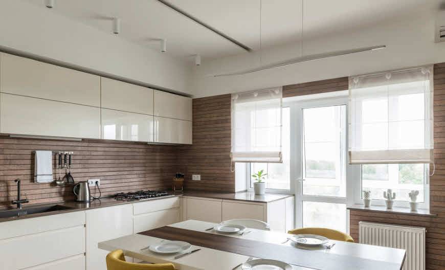 Для оформления этого решения в кухне необходимая тщательная планировка. Часто даже создается дизайн проект, который не позволит упустить важные детали. Основными характеристиками выступают: