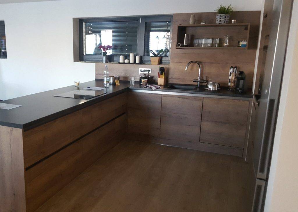 Коричневая кухонная мебель и светлая столешница – идеальное сочетание, особенно на современных и небольших кухнях. Такая кухонная столешница станет контрастным стильным дополнением. Вы также можете соблазниться столешницей того же цвета, что и мебель.