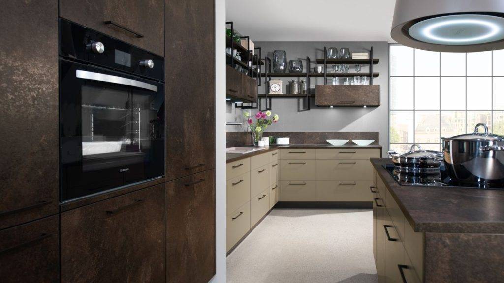 Говоря об аксессуарах, также стоит упомянуть отделку коричневой кухни. Отделка, такая как фасады, ручки, система открывания и дополнительные элементы, стоит выбирать в стиле, в котором вы хотите обустроить кухню. Если она должна быть современной, используйте минималистскую, но функциональную мебель.