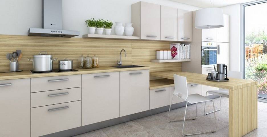 Важно оформить его в мягких оттенках: персик, беж, молочный, кофейный, крем-брюле. Такой вариант рабочей зоны подходит для небольших по площади кухонь
