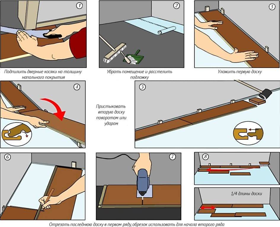 Оптимальным вариантом ламината для самостоятельной укладки является ламинат с замками Click. Его собрать будет проще всего, а в случае допущения ошибки можно будет и быстро разобрать, не испортив.