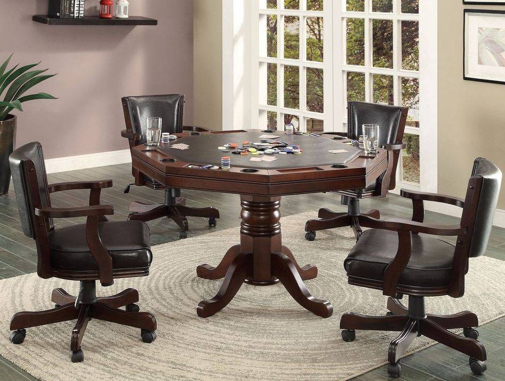 - Трансформеры — модели, в которых каждая сторона столешницы функциональна. Например, с одной стороны можно играть в шахматы, с другой — в карты. Другой вариант — одна часть предназначена для игр, другая является обеденной зоной. Чтобы сменить поверхность, надо просто перевернуть столешницу.