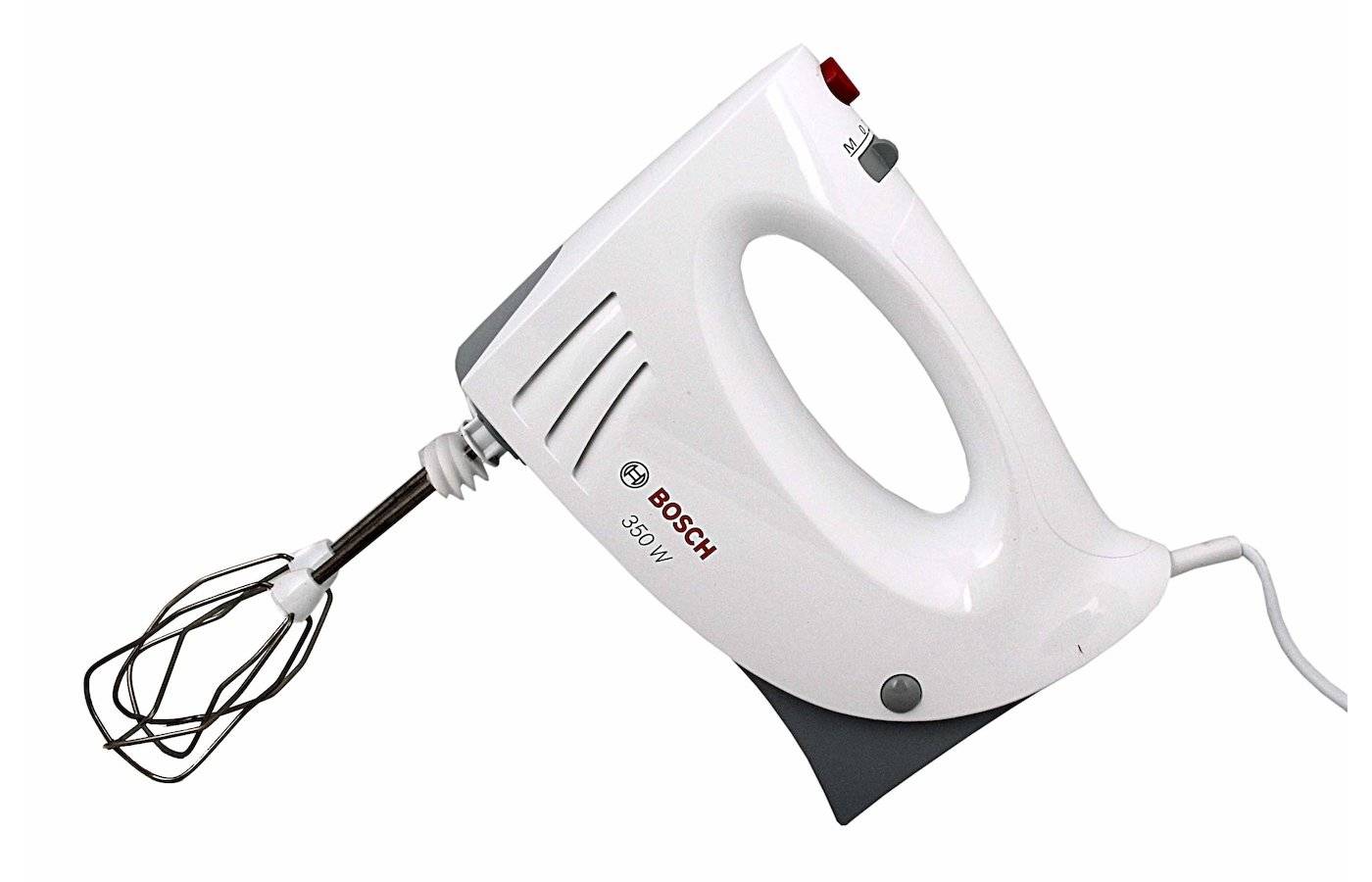 Классика в исполнении немецкой фирмы. Тот самый миксер для дома, который представляется первым делом, когда слышишь слово «миксер. Производитель в первую очередь нахваливает свои инновационные венчики. У них интересная неровная форма, что якобы способствует лучшему перемешиванию. Интересно, что правый и левый венчик отличаются креплениями, поэтому каждый из них вход в свое отверстие. При желании можно докупить ножку погружного блендера. Стоит, примерно, как треть самого миксера. На ручке есть резиновые вставки для комфортного захвата. По сравнению со многими конкурентами даже из этого рейтинга лучших миксеров для дома, работает тихо. Способен без остановки крутить венчики 15 минут и почти не нагреться. Скорости регулируются ползунков на верхней части ручки. Будьте осторожны: производитель прибегнул к нестандартному решению, которое к сожалению, многих сбивает с толку. Двигая ползунок вправо — по нарастающей добавляем скорость. Но при этом от нулевой отметки он двигается еще и влево, где находится функция максимальной скорости. То есть, иногда на автомате отключая прибор, можно забыться и врубить максимальную.