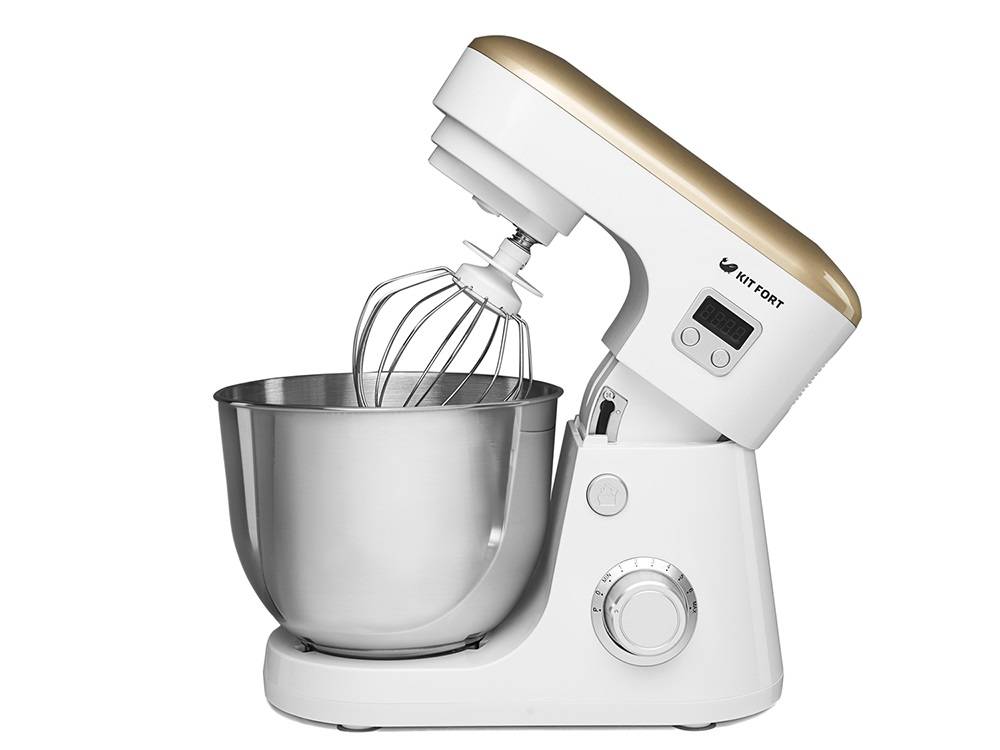 Отечественный производитель радует потребителей хорошей ценой на планетарные миксеры. Это бюджетное приобретение для начинающих кулинаров. Kitfort КТ-1308 предназначен для продуктивной домашней работы. Он имеет ряд функциональных преимуществ: